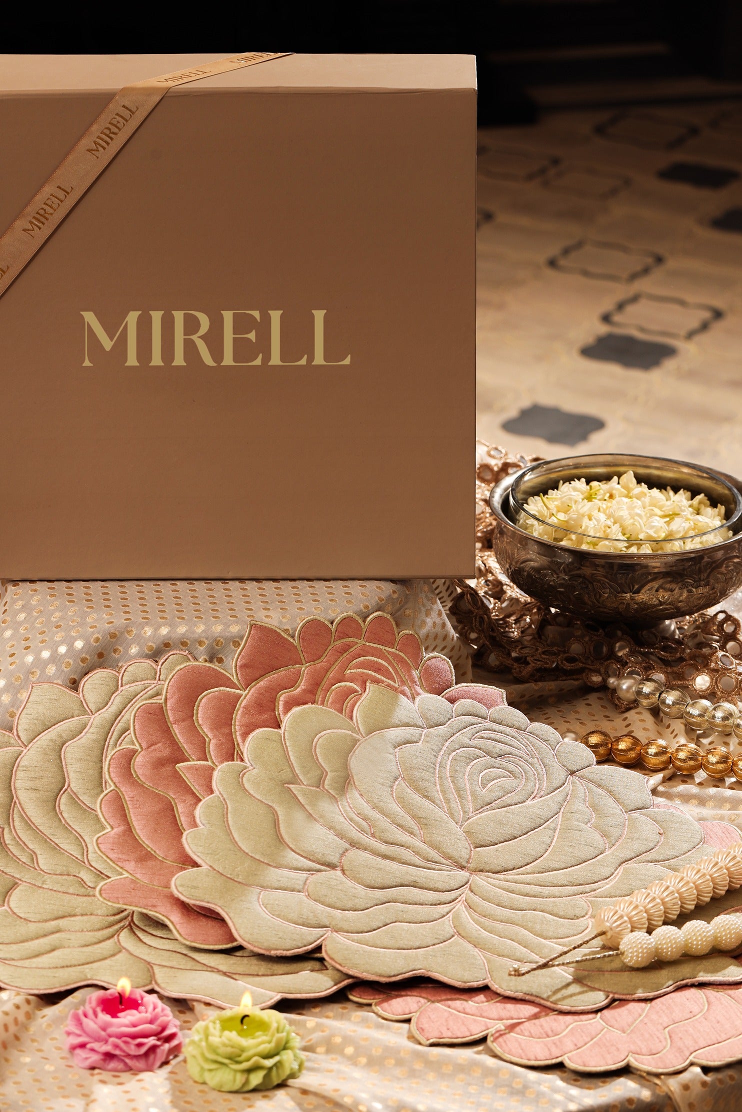Grace your dining table with the delicate charm of blush Rose. elegant shape of a blooming rose, these placemats bring artistry to everyday dining. Available in soft pink and fresh lime green, they add a touch of freshness, romance, and vibrance to your table setting. This set includes: