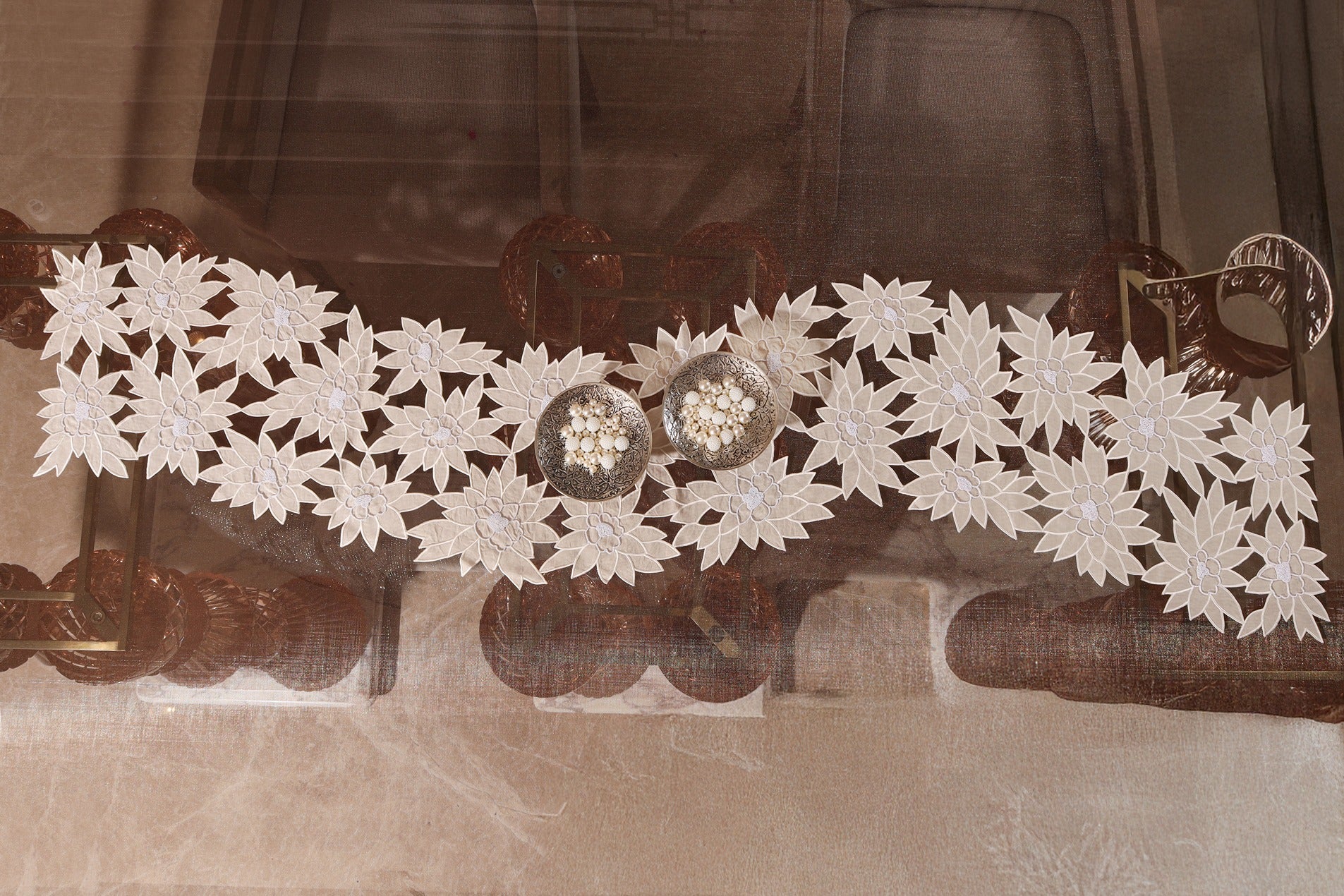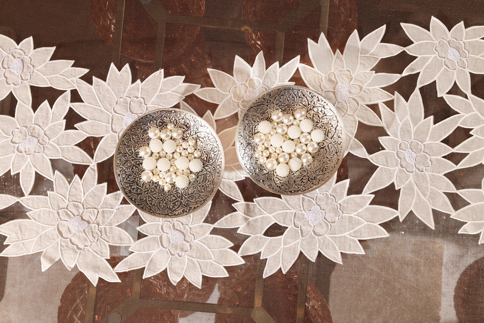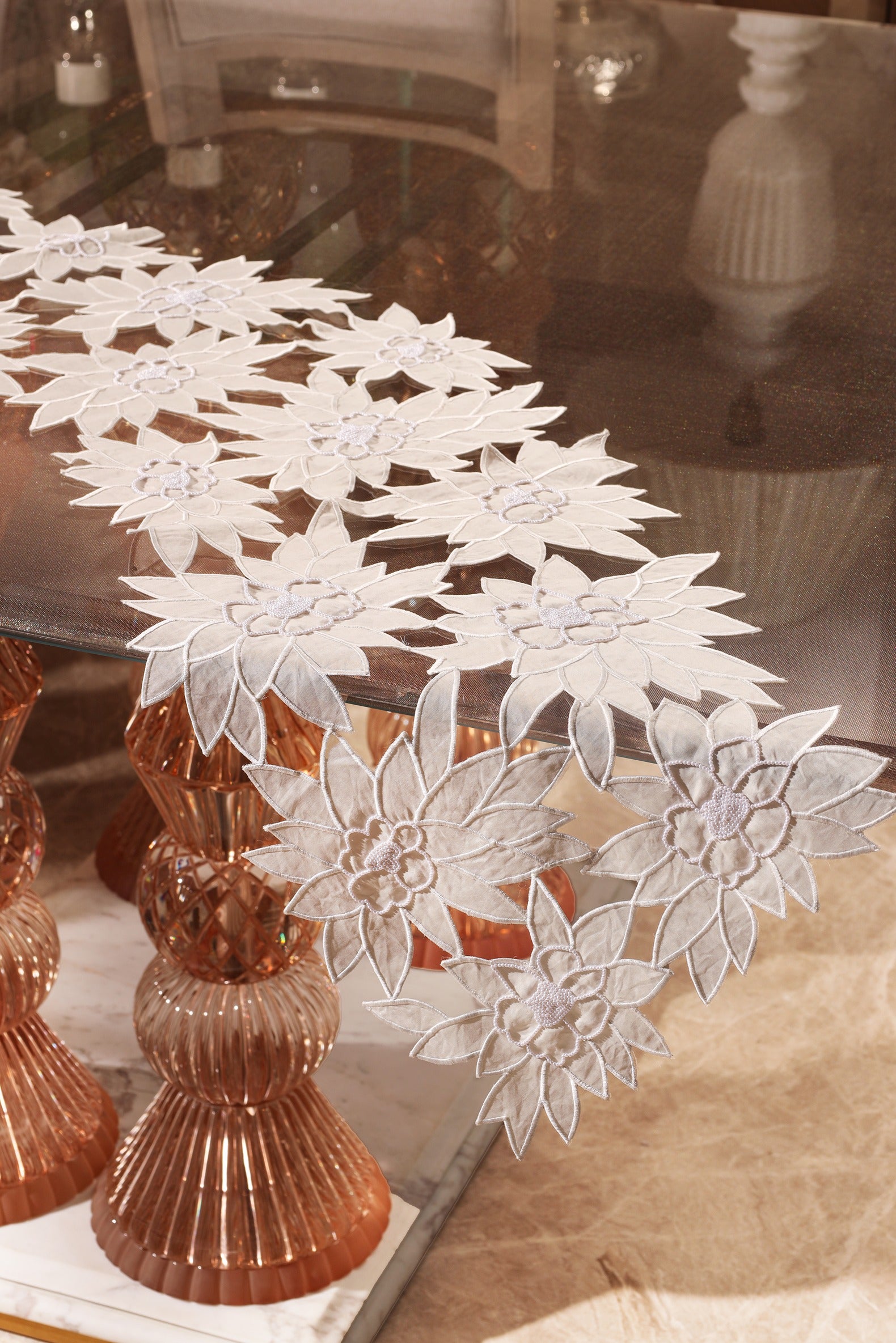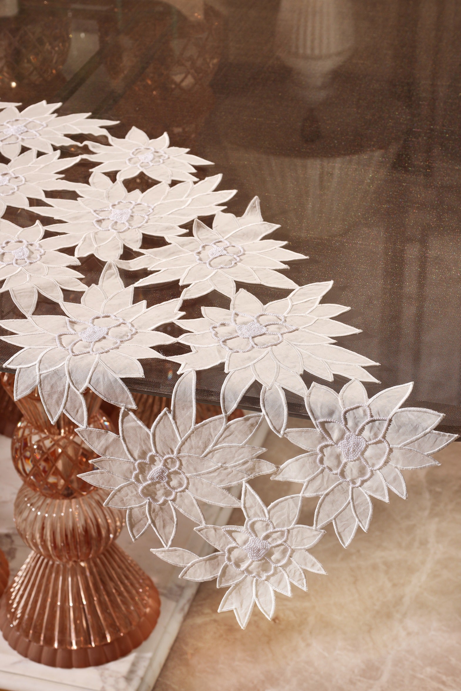 Delicate yet striking, Nora is crafted in silk organza with exquisite floral cutwork embroidery. Accented with pearls, this design captures understated luxury in its soft ivory palette.