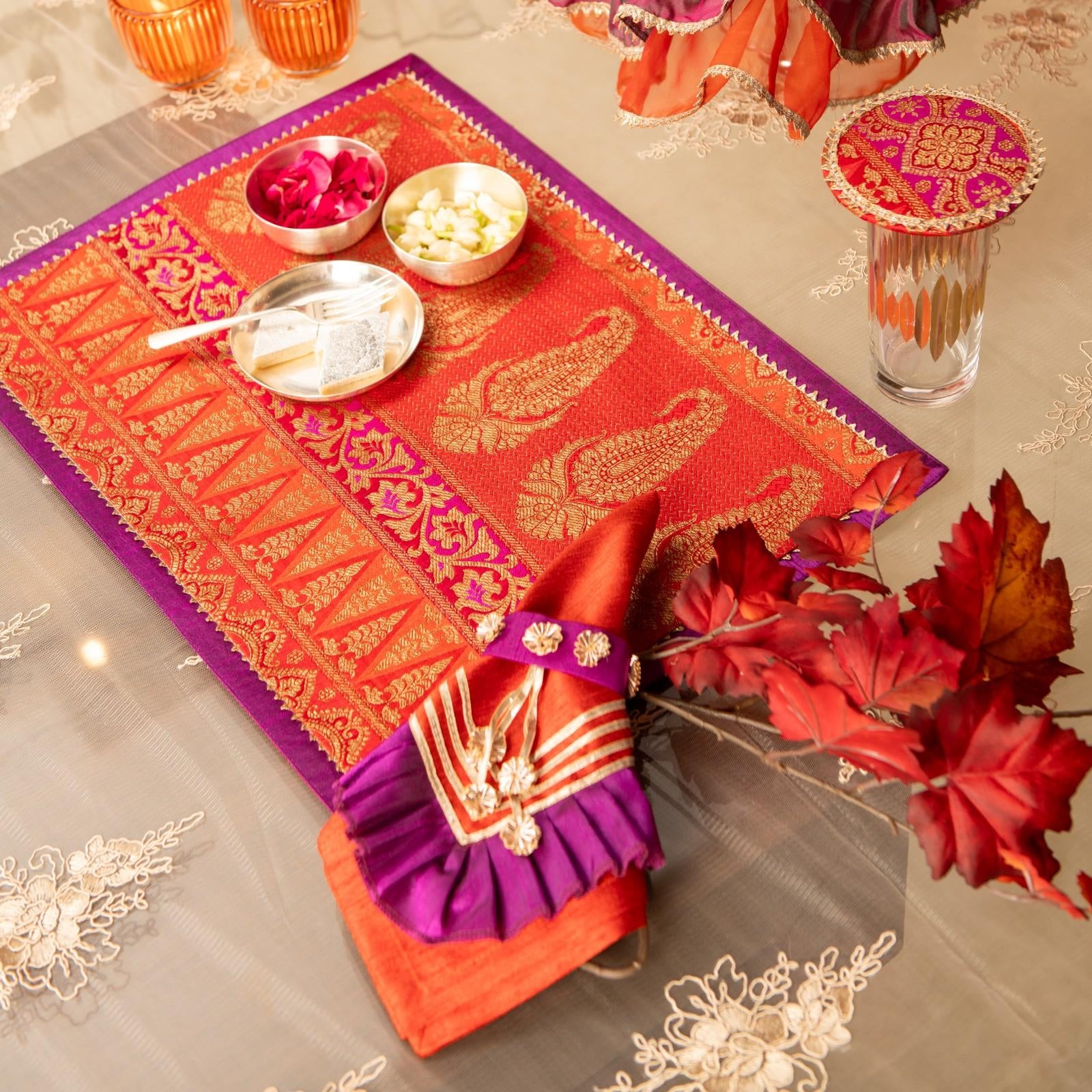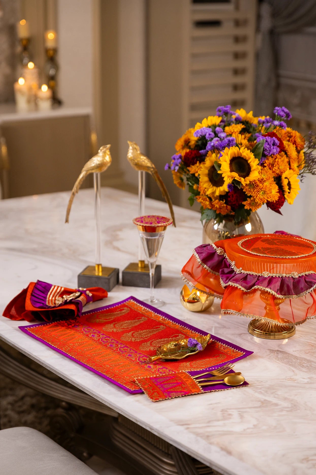 The Ritual Radiance collection brings the warmth and vibrancy of Indian traditions to your table. Each piece is thoughtfully adorned with intricate gotta work, timeless motifs, and lively, festive frills, creating a beautiful blend of culture and luxury.